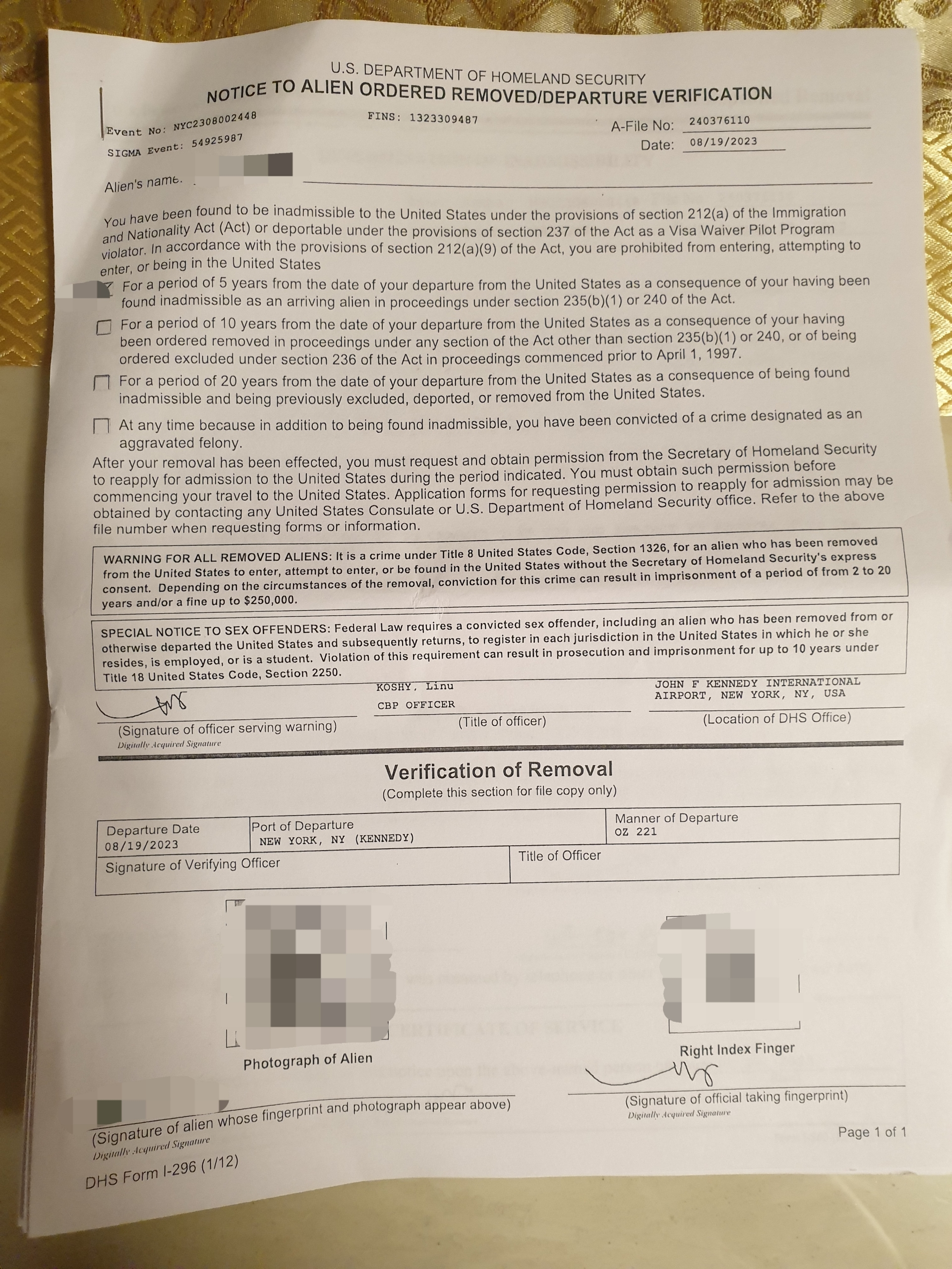 의 정황만 보여도, 과거 "주의"를 주고 끝나던 것을 즉각 추방하고, "10년 미국 입국금지" 까지 받고 있는 실정입니다.