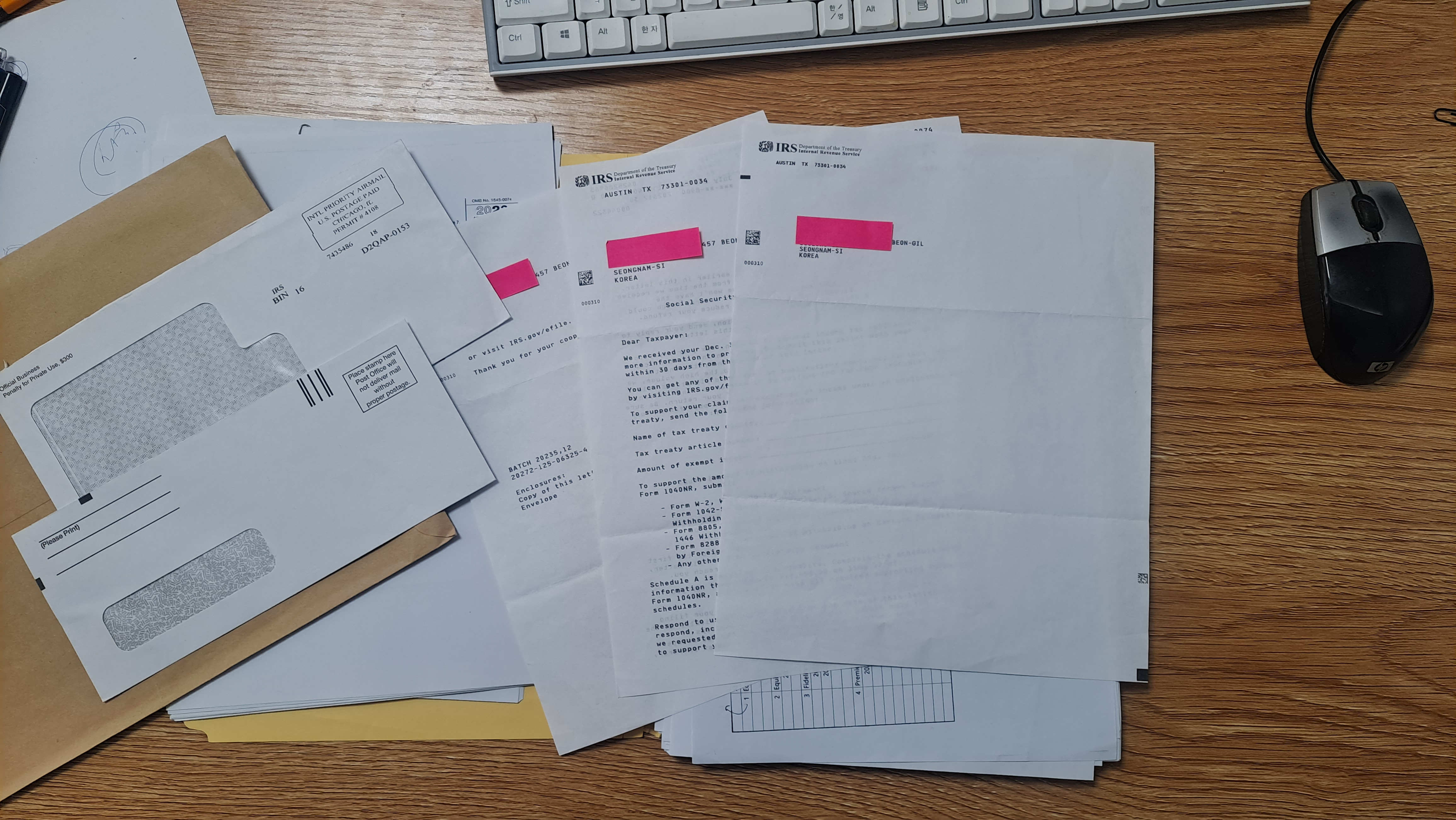 (아래 사진은 현재 진행중인 미국시민권자 국적포기세 관련 IRS로 부터 받은 서류와 case file입니다.)