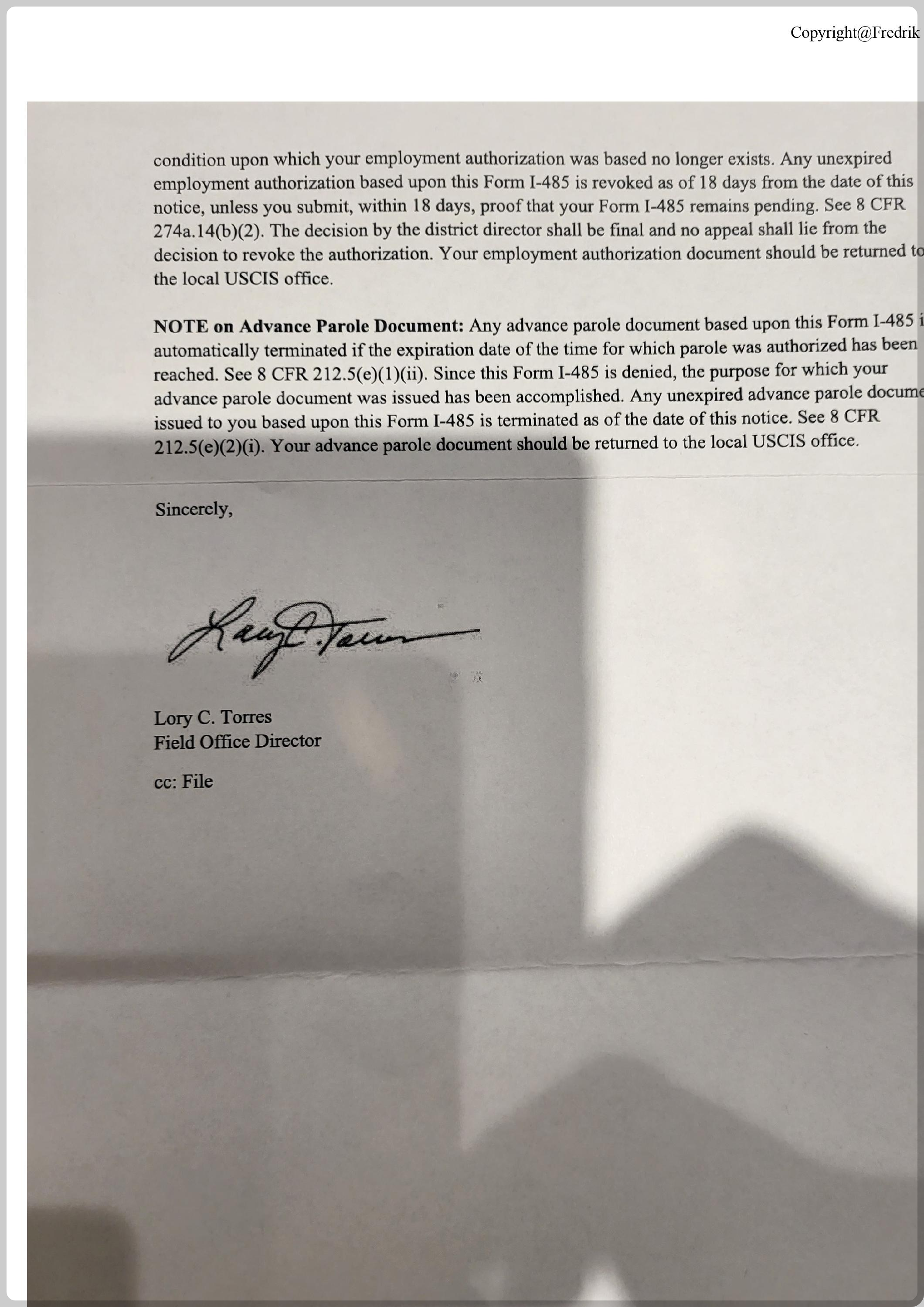 오늘은 이러한 문제로 최근에 영주권이 거절되신 분의 이민국거절 편지(USCIS denial letter)를 보여드리겠습니다.