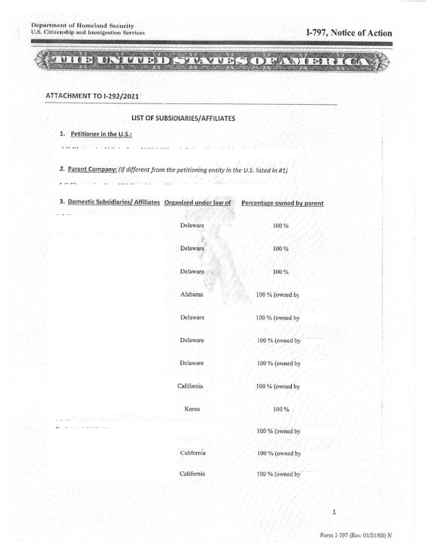 좀 유치하긴(?) 하지만, 제가 가능하면 E-2주재원 비자를 권하다 보니(장점이 훨씬 많다고 생각하여...) 혹시, L 비자 경험이 적어서 그런것 아닌가 하는 의심(?)하시는 분들이 있을것 같아서 -- 특히 Blanket Petition -- 과거 Blanket Petition 승인서(Approval Notice) 스캔하여 올립니다. 블랭킷퍼티션 승인서가 어떻게 생겼는지 궁금하신 분들도 참고 하시기 바랍니다.